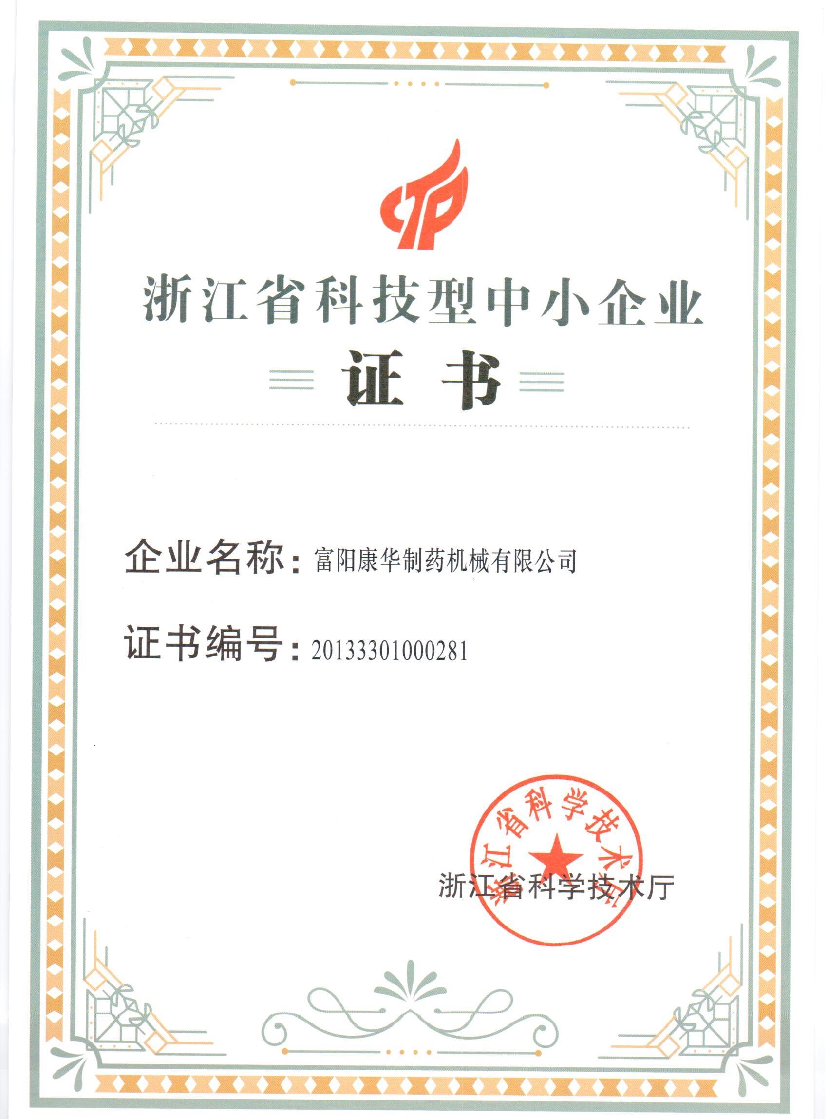 浙江省科技型中小企業(yè)證書(shū)(2013年)