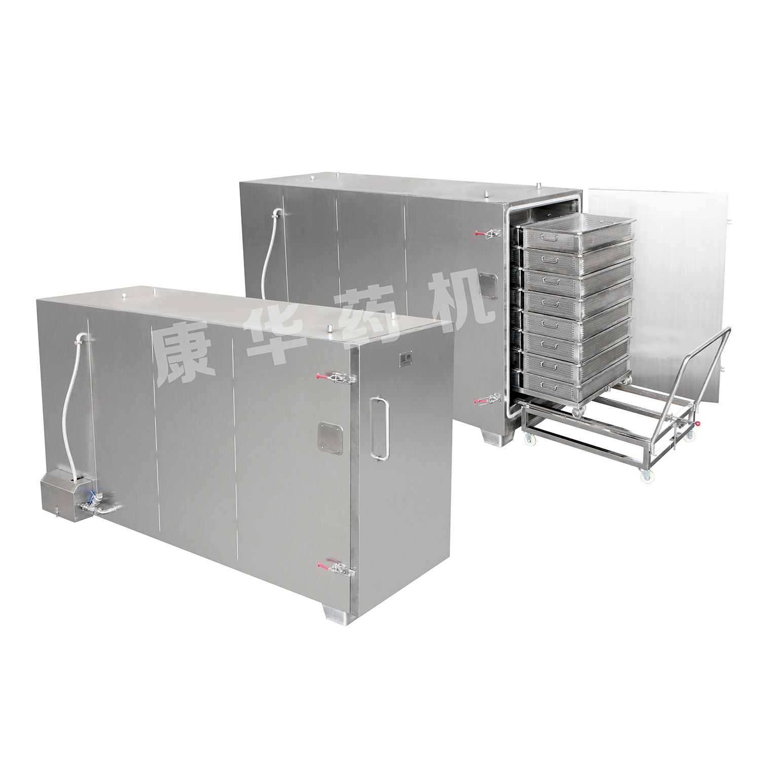 化效果好,速度快,避免有效成分流失等優(yōu)點(diǎn)。方形箱體的有效容積率達(dá) 99%,開機(jī)(閥門的開閉)、箱體的密封、抽真空、真空度控制、蒸潤、關(guān)機(jī)等過程