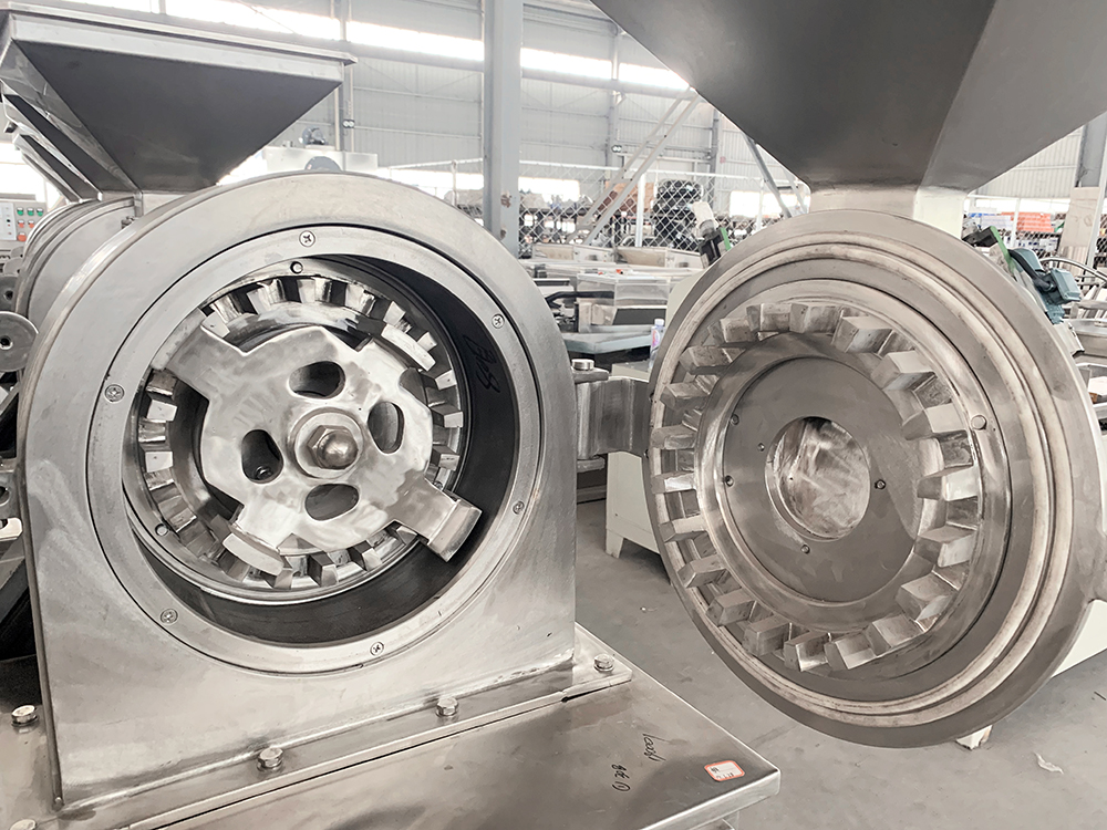 本機(jī)結(jié)構(gòu)簡(jiǎn)單、堅(jiān)固、運(yùn)轉(zhuǎn)平穩(wěn),粉碎效果好、噪音低、振動(dòng)小、生產(chǎn)過程中無粉塵飛揚(yáng),被粉碎物可直接由主機(jī)磨腔中排出,粒度大小通過更換不同孔徑篩網(wǎng)而控制。符合GMP要求。